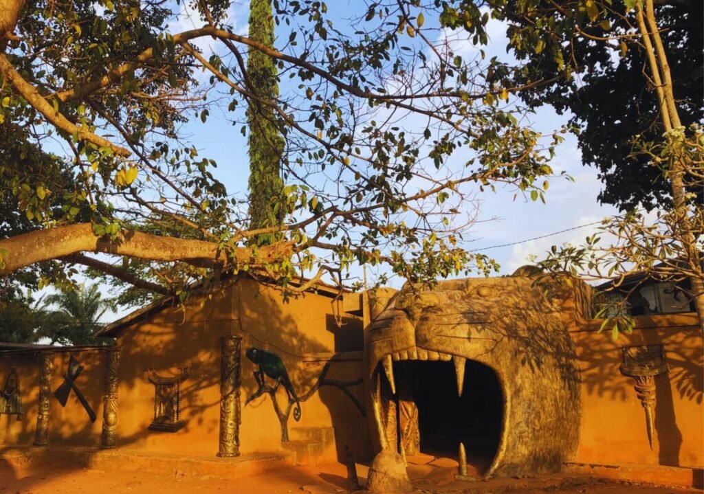 Les Palais Royaux d’Abomey , inscrits au Patrimoine Mondial de l’UNESCO , sont l’héritage le plus marquant. Ces structures en pisé, dont l’architecture unique reflète l’organisation sociale et politique du royaume, abritaient les résidences et les centres rituels des douze rois successifs. L’art dahoméen était raffiné, mettant en scène la royauté à travers des symboles, des bas-reliefs, des statues et des tentures.